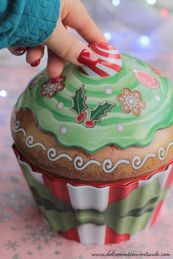 Ho deciso di presentarli nella mia nuova scatola di latta di Style Box a forma di gigante cupcake natalizio, non è bellissima? Andate a dare un’occhiata sul loro sito, ne vedrete di fantastiche.