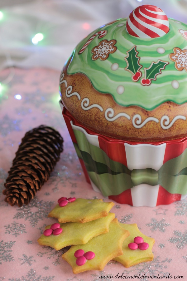 L’altro giorno sistemando le mie formine per biscotti, ho visto quella a forma di agrifoglio e l’idea mi è venuta immediatamente.