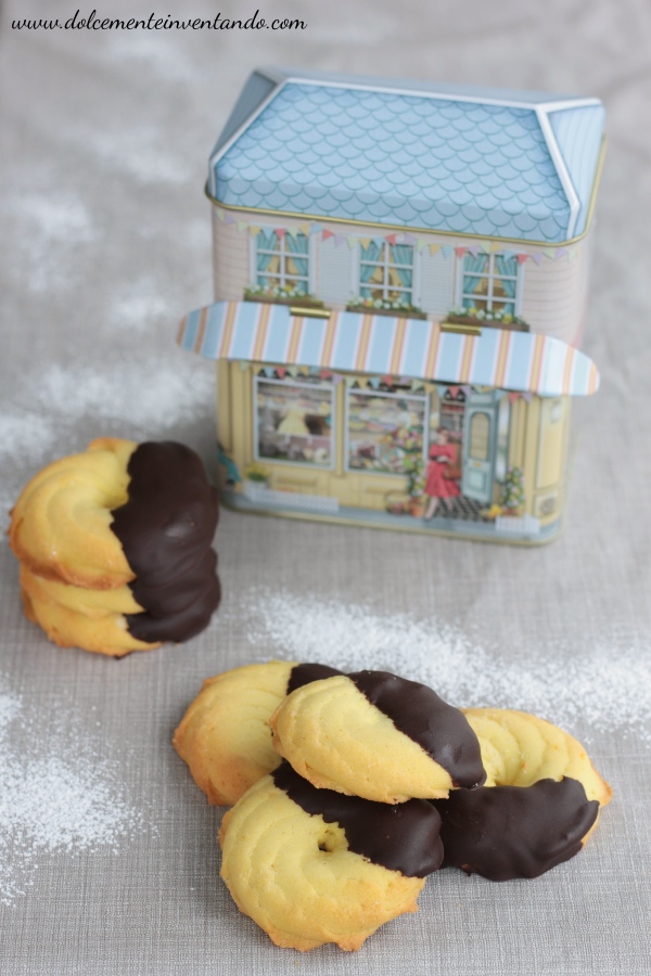 Una volta raffreddati, intingete i biscotti nel cioccolato fuso lasciate solidificare su una gratella.