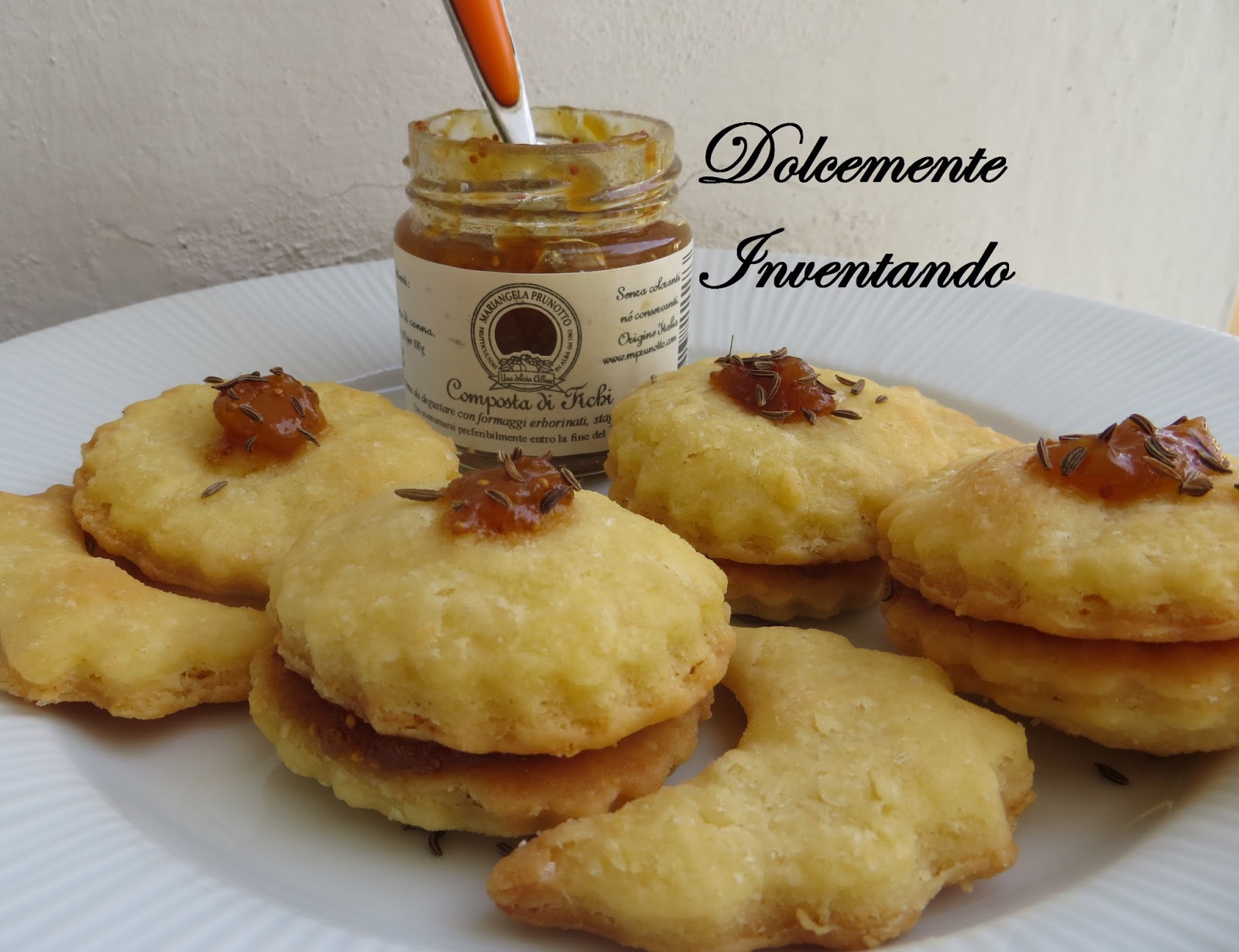 Quando saranno raffreddati, accoppiate i due biscotti con della composta di fichi  e decorate con i semi di cumino.