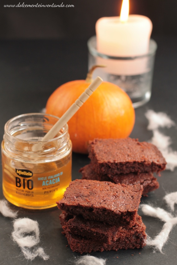 I brownies alla zucca e miele di acacia sono un dolce perfetto per la notte più spaventosa dell’anno.