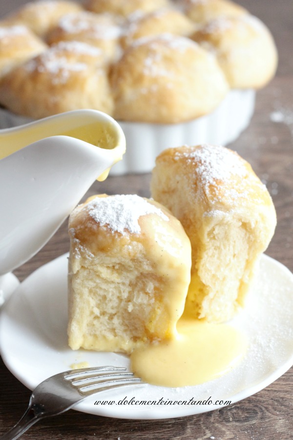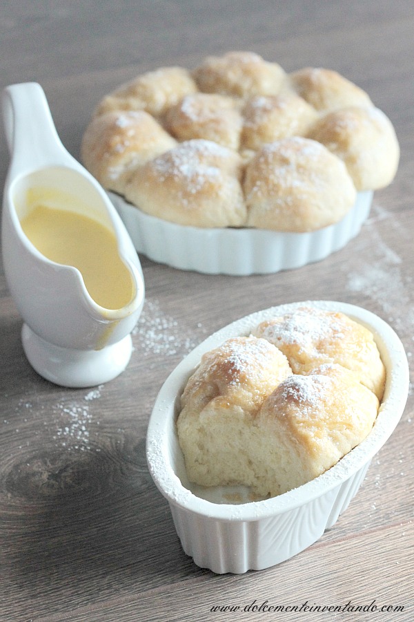 Buchteln (Rohrnudeln) con salsa alla vaniglia