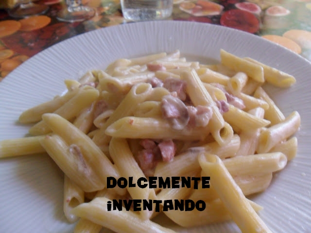 Primo: Pennette alla crema di mascarpone con pancetta