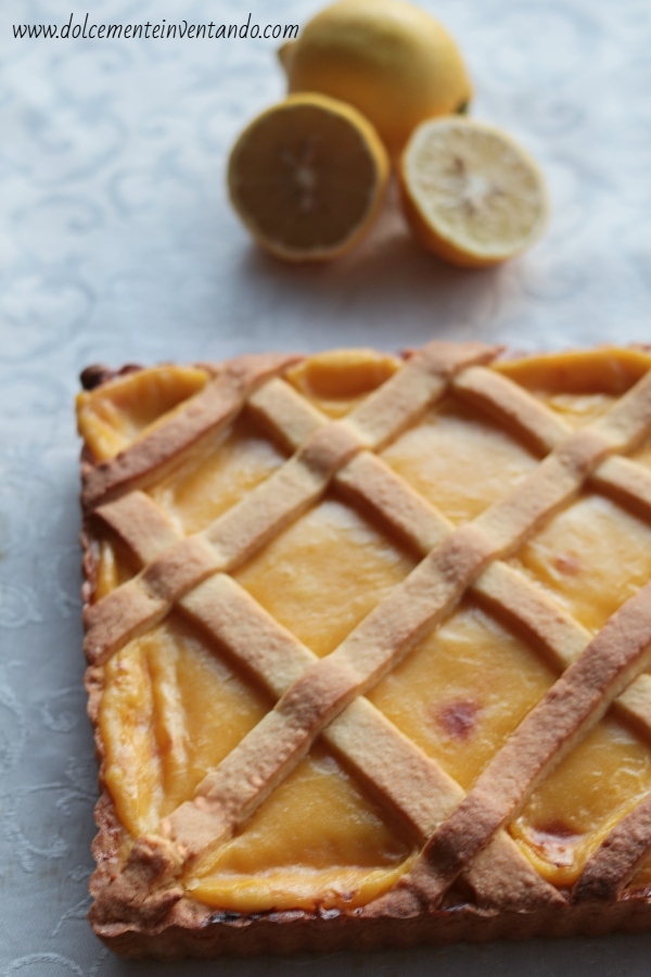 Stendete la frolla nello stampo imburrato e infarinato, bucherellate il fondo con la forchetta, versate la crema di limone ormai fredda e terminate con le strisce di frolla in superficie.