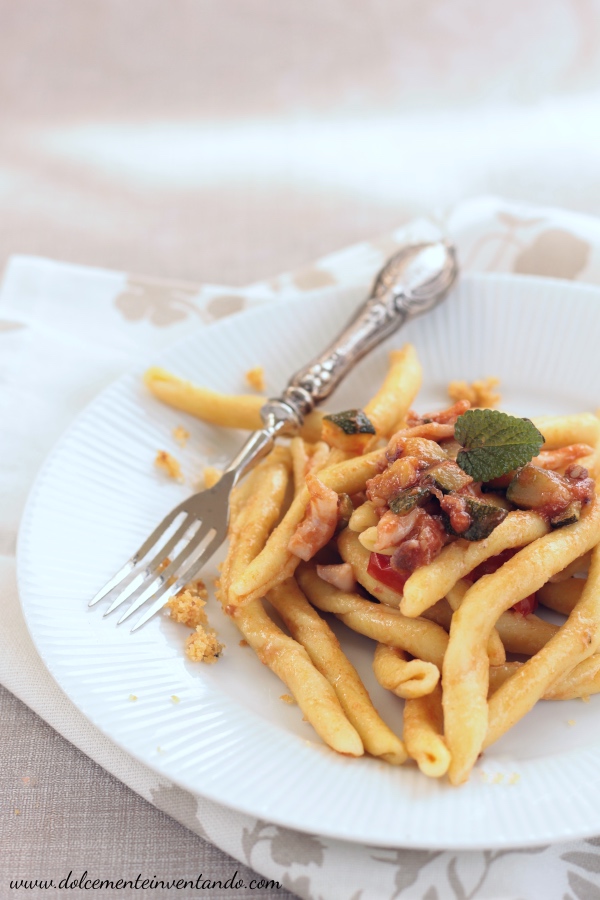 I fileja al bergamotto con ragù di seppia e zucchine sono un’idea che mi è venuta pensando alle paste aromatizzate tipiche calabresi e avevo voglia di crearne una io con il profumo del bergamotto e l’aroma del mare, dato dalle seppie e dalle alici.