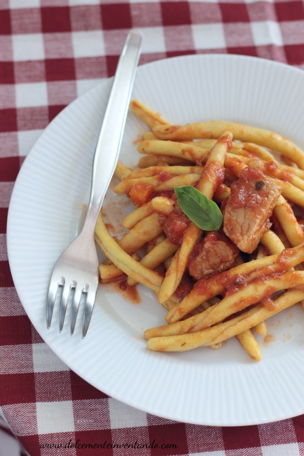 Si tratta di un fusillo a base di semola lavorato a mano e arrotolato su un ferro.