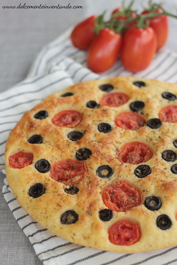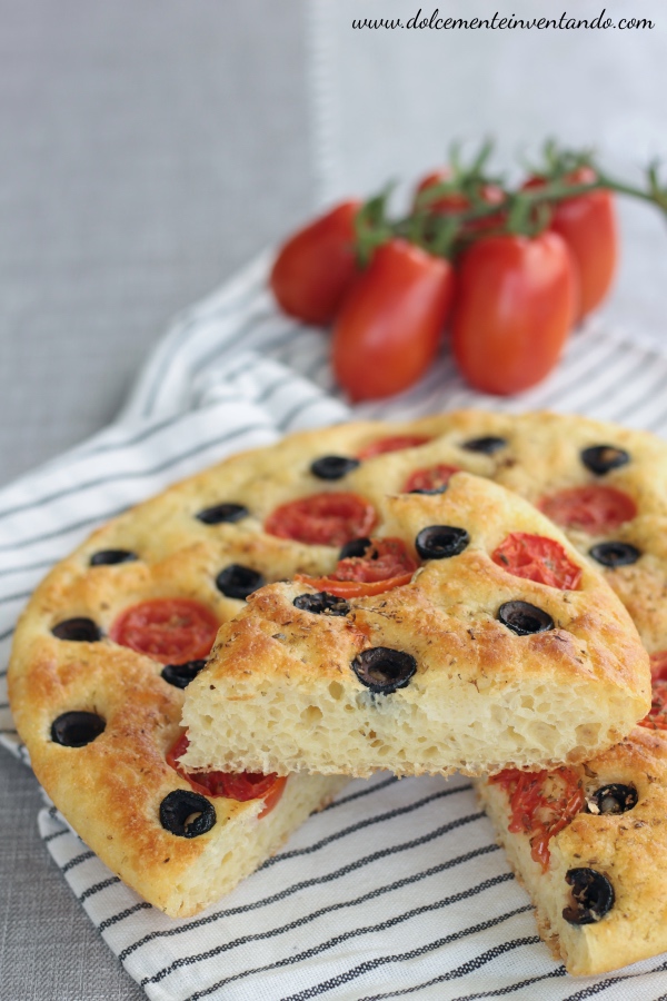 FOCACCIA BARESE ALLE OLIVE E POMODORI