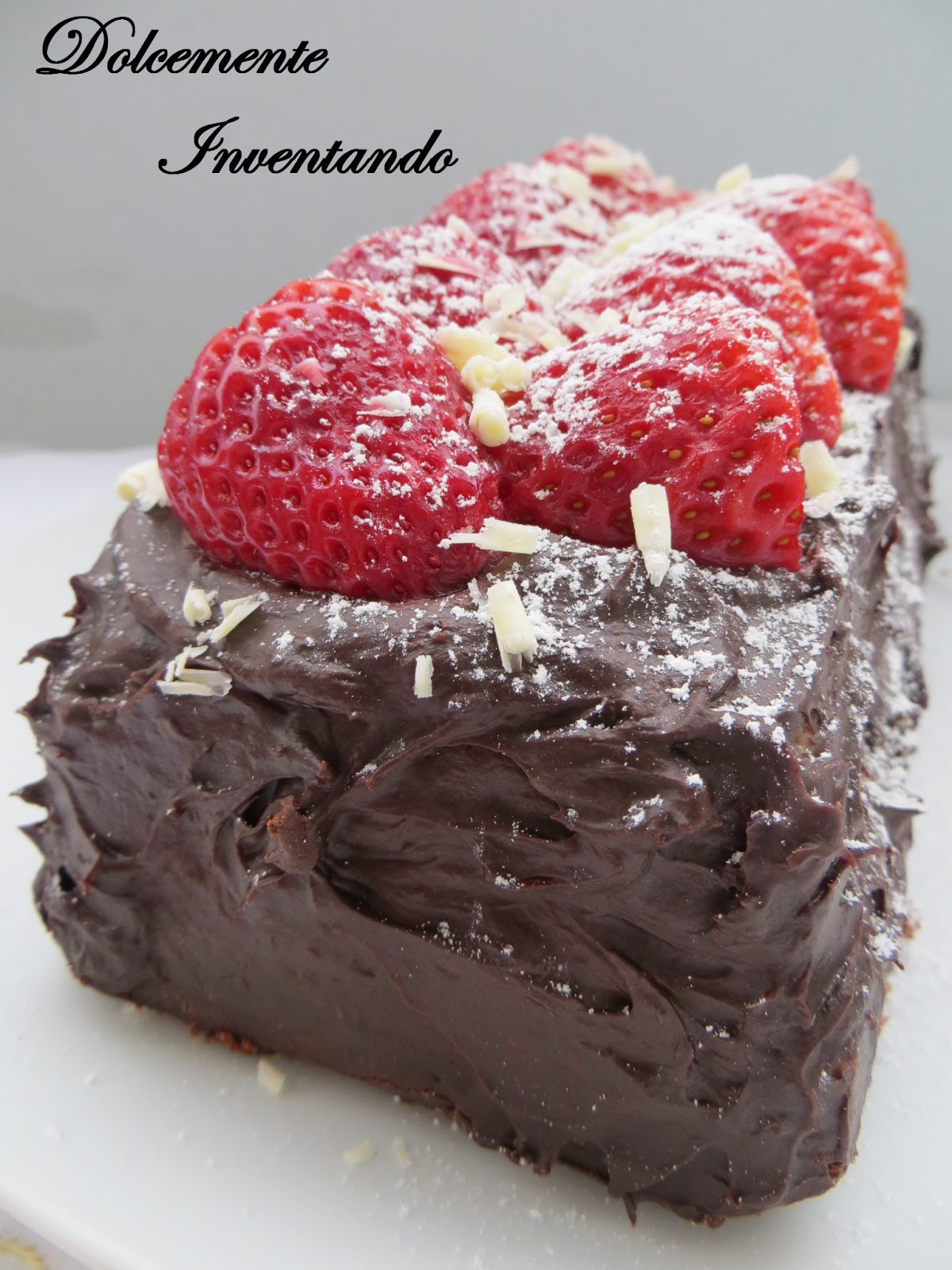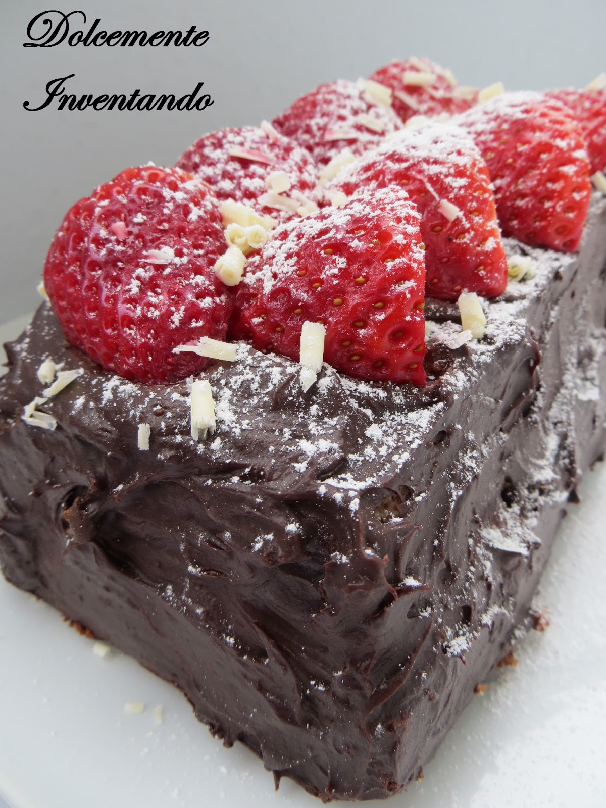 di una spatola e decorate con le fragole , lo zucchero a velo e le scagliette di cioccolato bianco.