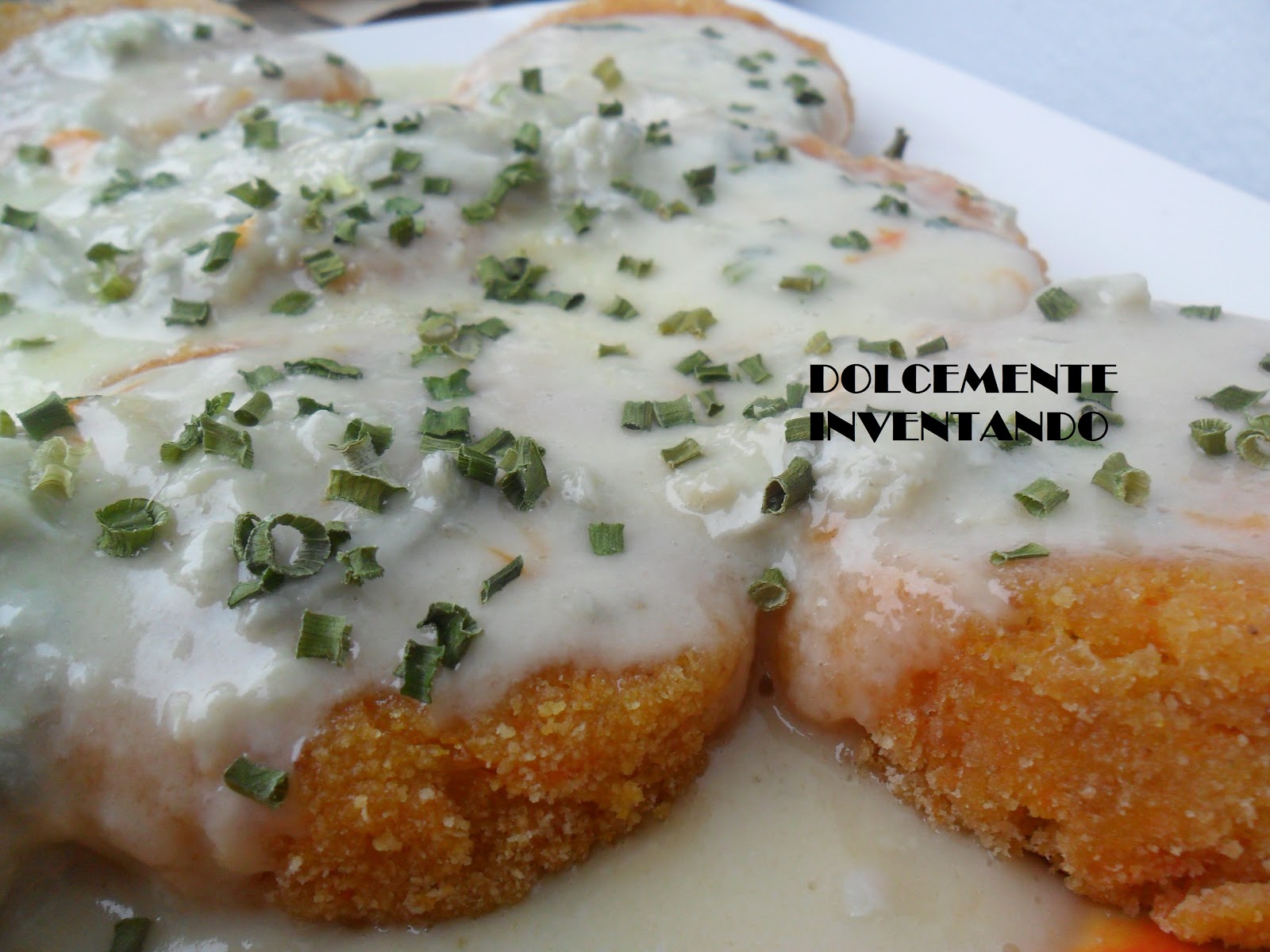 In una padella fate fondere il gorgonzola con qualche cucchiaio di latte e versate sulle crocchette…Servite con dell’erba cipollina!
