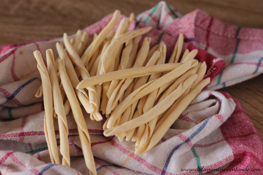Trascorso il tempo di riposo della pasta, formate dei piccoli cilindri di pasta e fateli aderire ad un ferro di calza infarinato.