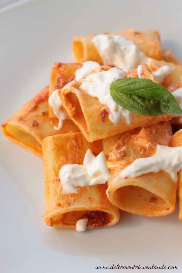 I paccheri alla ‘nduja di Spilinga e burrata sono un primo piatto gustoso e pieno di sapore.