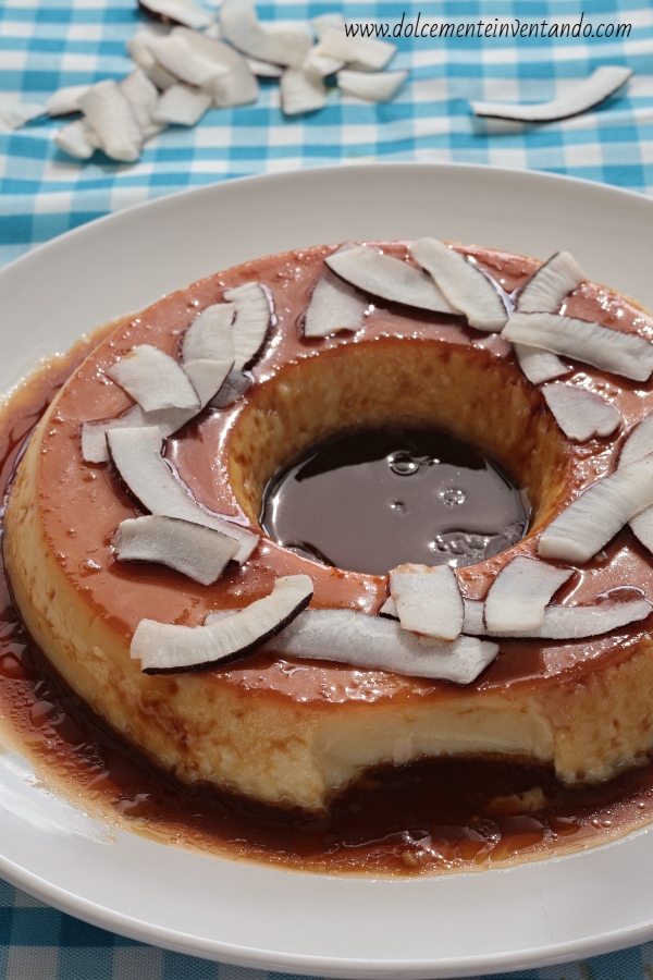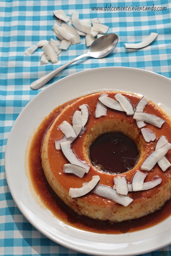 Si cuoce in forno a bagnomaria e poi si attende che la consistenza si rassodi qualche ora in frigo prima dell’assaggio, se amate il cocco, ve ne innamorerete.