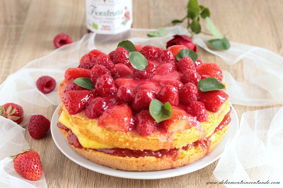 TORTA ALLE FRAGOLE E LAMPONI CON CREMA E CONFETTURA