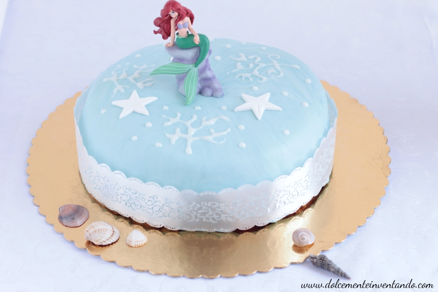 E nonostante i mille impegni sono riuscita a prepararle una torta a tema sirenetta Ariel , con cupcakes a tema marino.