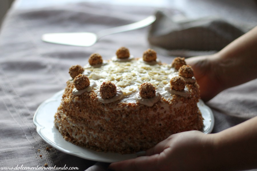Un connubio di nocciola, cioccolato bianco e croccante wafer fanno di questa torta una goduria pazzesca.