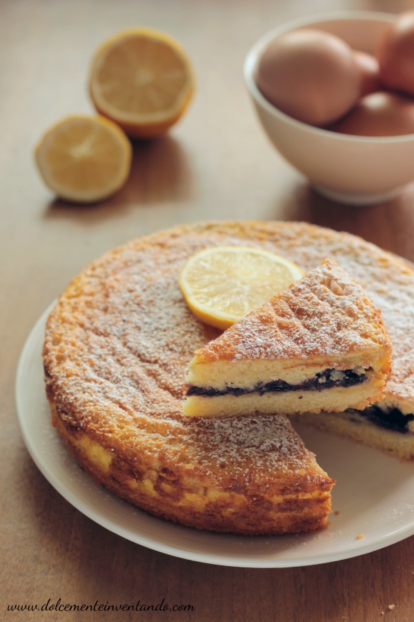 TORTA VERSATA ALLA CREMA PASTICCERA AL LIMONE E CONFETTURA DI MIRTILLI
