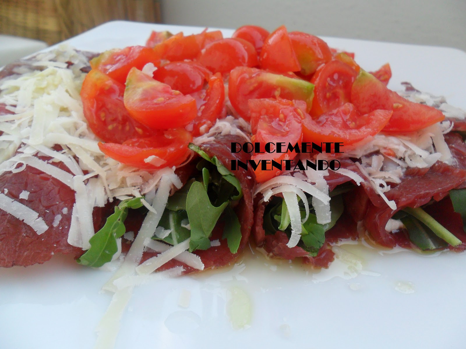 INVOLTINI DI CARPACCIO DI CARNE SALADA TRENTINA CON PHILADELPHIA E RUCOLA